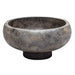 Terracotta bowl finished in an aged black with gold highlights and accented by a water hyacinth covered base.