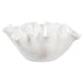 This elegant ceramic bowl features a stunning ruffled edge design, evoking the delicate shape of a blooming flower. Its soft white glaze with a subtle crackle finish adds texture and sophistication, making it an ideal statement piece for any modern or classic decor. Perfect for displaying as a centerpiece or for functional use, this bowl blends art and practicality effortlessly.