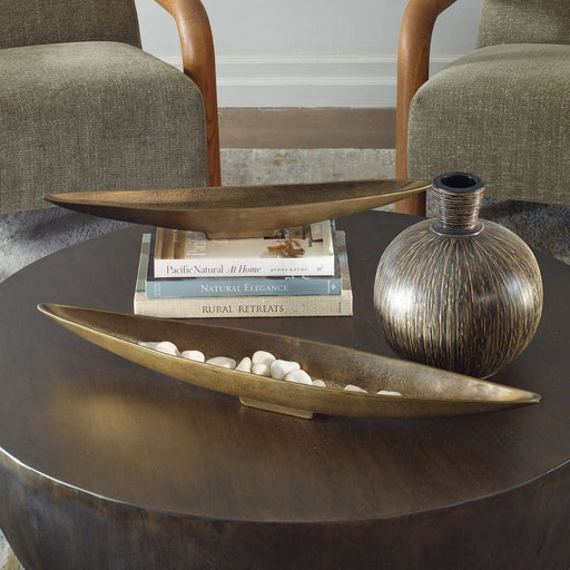 UttermostThe antique brass finished cast aluminum bowls feature a sleek, elongated design, perfect as decorative centerpieces or functional accents for any ...