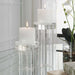 This elegant set of candleholders is created from solid pieces of crystal with delicate carved details. Two 3" x 3" white candles are included. Sizes: S-4x5x4, L-4x9x4
