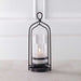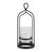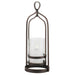 Taking cues from Moroccan style, this candleholder is finished in dark bronze with gold rub-through details and a textured glass hurricane. One white 3"x 3" candle is included.