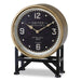 Clock face features a metal frame with a brass finish and aged black stand. Quartz movement ensures accurate timekeeping. Requires one "AA" battery.