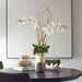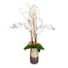 A stunning display of rich earth tones and natural textures. Feautures crisp white orchids paired with natural curly willow and preserved mushroom accents. Set into a handcrafted glass vase in neutral tones of sand, rust and bronze.