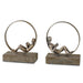 These whimsical bookends feature an antiqued silver leaf finish with a light gray glaze.