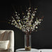 Effortlessly arranged as if freshly harvested, these quince branches exemplify the true characteristics of live blooms. Varying in stages of openness, cream buds are accented by natural rocks in a clear glass vase.