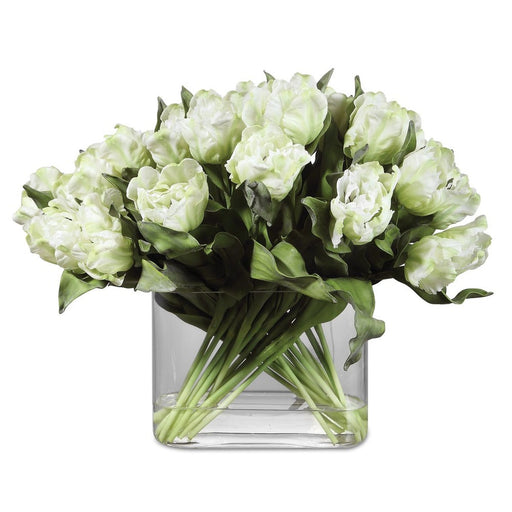 UttermostFeaturing a dramatic spread of white tulips, meticulously placed into an oval glass vase complete with faux water.Specifications Featured-0 Dimens...