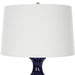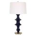 A contemporary tribute to classic chinoiserie, this table lamp's fluted base is formed from sculpted ceramic in a rich cobalt gloss glaze, accented by antique brass plated hardware. The slightly tapered drum shade is covered in a classic white linen fabric.