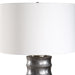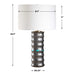 Made from porcelain, the Corvair Table Lamp features a timeless scalloped design finished in metallic dark bronze glaze, paired with brass plated details that adds depth and dimension to its sleek design. The round hardback drum shade is made in a casual white linen fabric.