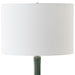 This ceramic fluted base is adorned in a hunter green crackled glaze. This sophisticated table lamp is further enhanced by a thick crystal foot and plated brushed nickel hardware, bringing a touch of luxury and refined taste to any room. The round drum hardback shade is made in a casual white linen fabric.