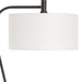 This arched floor lamp is crafted from steel and features a stunning plated antique brass paired with rustic dark bronze details. The suspended round hardback shade is elegantly draped in white linen fabric, adding a refined touch to any room.