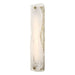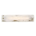 Handmade combination of clear & white swirl glass create the wonderful organic look of this LED sconce. Due to the handmade nature each piece will have a unique pattern. Can be installed horizontal or vertical as sconce or vanity with it's damp label certification. With only an extension of 2.5 " it is ADA compliant. No bulb required with the built-in LED light Strip: 40 watt, 3000K, CRI of 93, 1828 Lumens, 50,000 estimated hours of illumination.