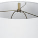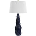 This ceramic table lamp showcases a contemporary abstract geometric design finished in a striking navy blue gloss glaze with plated brushed brass details. Paired with a tapered hardback shade in a white linen fabric.