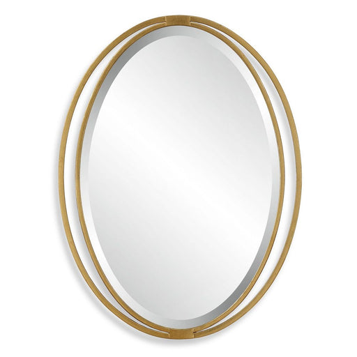 UttermostThe Rhodes Oval Mirror features an oval outer iron frame surrounding an inner oval, finished in a antiqued metallic gold leaf, adding sophisticatio...