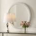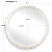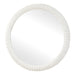 The Akiko Round Mirror features a high fired ceramic base adorned with beautifully crafted matte white ruffles, reminiscent of flowing waves, adding a touch of nautical charm.