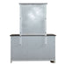 Create a classic look with a casual feel using the Allyson Park crown mirror. Crafted of poplar and rubberwood solids with cathedral white oak tops, the two-toned wire brushed white finish with a charcoal top creates a cottage style that works anywhere from the beach, all the way to the mountains. This mirror has beveled edges and offers bolt on support and a wide landscape view that is sure to capture every angle.