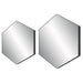 This set of two hexagon mirrors are encased in thick iron bands finished in a soft matte black. Each mirror has a 1" bevel and may be hung horizontal or vertical.