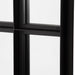 This mirror features a heavy iron frame with deep channels inspired by old warehouse windows, finished in satin black. May be hung horizontal or vertical.