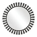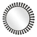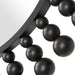 The Aziel Round Mirror features an eye-catching design with a smooth inner metal frame accentuated by a burst of outward-reaching spheres, all finished in a sleek satin black.