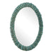 The Bonaire oval mirror is a true testament to craftsmanship, made from carefully folded and layered ceramic disks. Each piece is a unique handcrafted marvel, finished in a distressed mottled teal blue glaze. Due to the nature of fired glazes on ceramics, finishes will vary slightly.