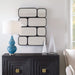 This contemporary design features a welded, off-set pattern with a petite profile and ample depth, finished in satin black. May be hung horizontal or vertical.
