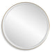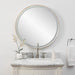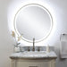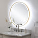 Versatile in design, this round mirror has integrated LED lighting that illuminates through the frosted strip in the polished edged mirror. The plated brushed brass stainless steel frame is off set from the wall to allow ambient lighting from the back. Easy to use touch buttons are featured on the bottom right of the mirror with an on off function, touch and hold kelvin control from 2700k to 4000k, and touch and hold brightness control. LED lights rated at 40,000 hours. Ships with plug, but can be hardwired professionally. Touch screen icons continue to illuminate when powered off for easy navigation in dark settings.