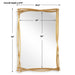 This unique mirror features a captivating frame crafted from hand forged iron with an organic, layered motif, finished in a lightly antiqued gold leaf. May be hung horizontal or vertical.