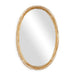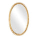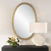 The Gillian Oval Mirror showcases a hand forged iron frame in a lightly antiqued brushed gold finish, offering a chic and contemporary touch that elevates any room.