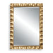 This mirror features a hand forged metal frame finished in a lightly antiqued gold leaf with an organic, scalloped edge design. A generous 1" bevel is added to this piece, which may be hung horizontal or vertical.