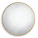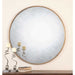Narrow metal frame with a heavily antiqued gold leaf finish surrounds the antique style mirror.