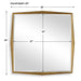 The On Point Square Mirror features a faceted profile crafted in a solid wood frame. Each of the four sides gracefully bows out, enhancing the heavily antiqued gold leaf finish. The petite 3/4" bevel elegantly follows the frame's contours, elevating its appeal.
