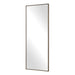 This sophisticated dressing mirror features an oxidized antiqued bronze finish on a clean, linear iron frame. May be hung horizontal or vertical.