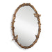 This frame features a bird and vine design. The finish is distressed, antiqued gold leaf with a gray glaze.
