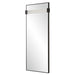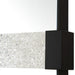 The Stratton Mirror is constructed in a linear satin black iron frame, featuring a suspended acrylic slab, adorned with heavy texture for an extra touch of sophistication and style. May be hung horizontal or vertical.