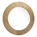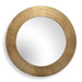 The Tano Round Mirror features a cast aluminum frame with a refined, channeled texture, finished in plated antique brass.