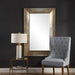 This elegant design features a gracefully sloped surface with a refined, channeled texture, finished in a warm champagne. Mirror features a generous 1 1/4" bevel and may be hung horizontal or vertical.