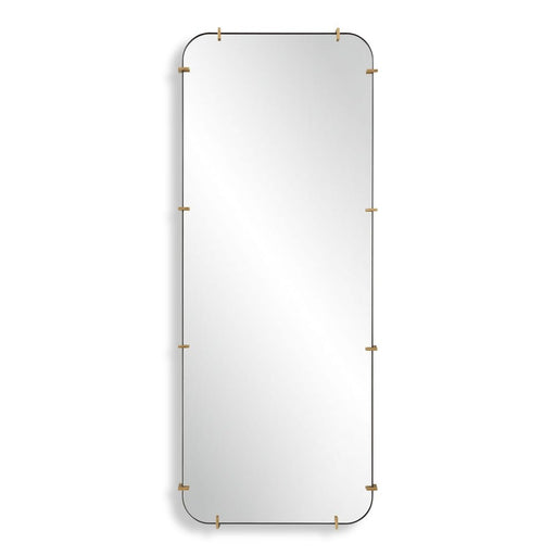 UttermostThis mirror pairs contemporary styling with industrial details featuring a black iron frame accented by lightly antiqued brushed gold clamps. May b...