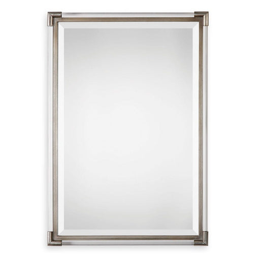UttermostRefined metal frame finished in a plated brushed nickel, displaying layers of depth surrounding a floating bevel mirror with a generous 1 1/4" beve...