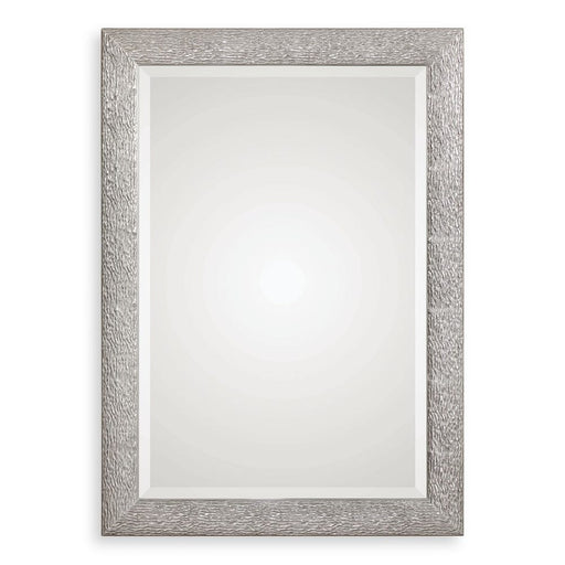 UttermostSolid wood frame featuring an embossed wavy texture, finished in a metallic silver with a light gray wash. Mirror features a generous 1 1/4" bevel ...