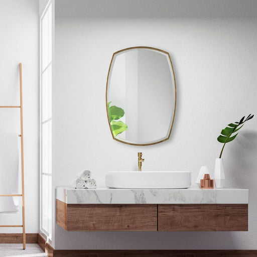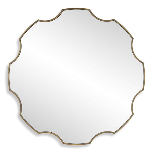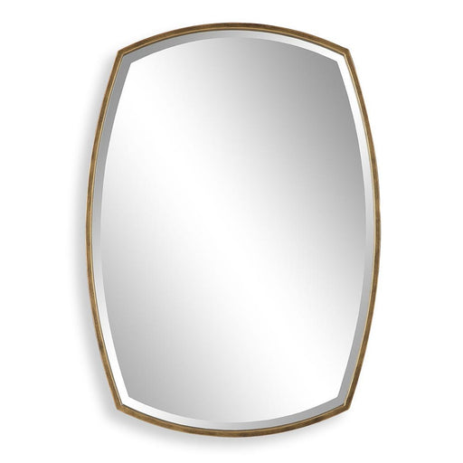 UttermostThis shapely mirror features an iron frame finished in a heavily antiqued gold with outer curves for an updated appeal to the traditional rectangle...