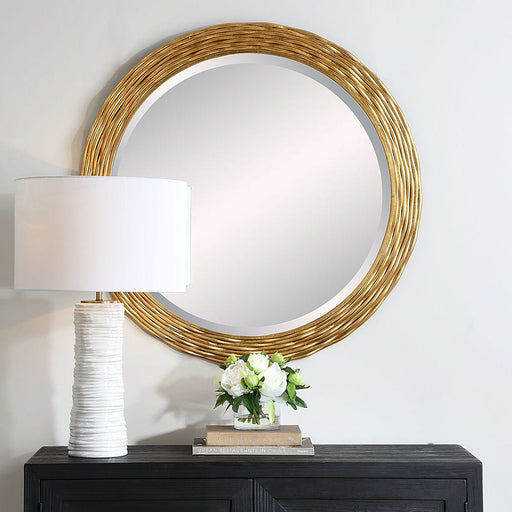 UttermostOur Celeste Round mirror is crafted with layered iron rods meticulously hand-forged to create a graceful, alternating wavy texture. This unique des...