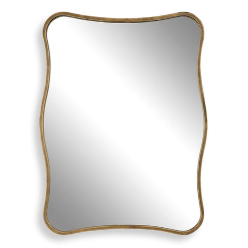 UttermostThis curvy vanity mirror features a shaped iron frame finished in a heavily antiqued gold. May be hung horizontal or vertical.Specifications Featu...