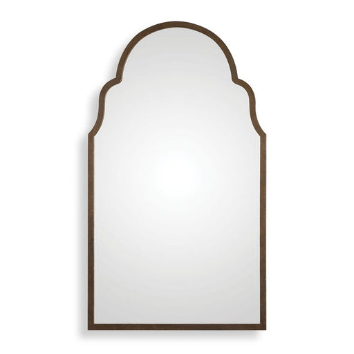 UttermostThis shaped mirror features a hand forged metal frame finished in lightly textured, dark brown with burnished edges and gold highlights.Specificati...
