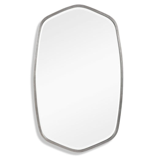 UttermostThis hand forged iron mirror frame features a unique shape with elegant curves, finished in a versatile silver leaf. Mirror has a generous 1 1/4" b...