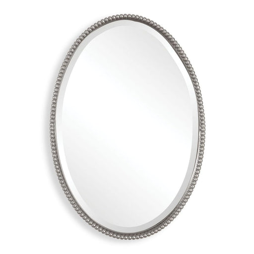 UttermostThis oval mirror features a frame made of hand forged metal with a brushed nickel finish. Mirror is beveled and may be hung horizontal or vertical....