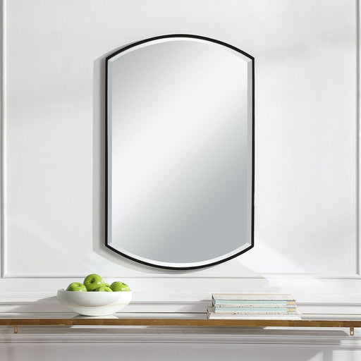 UttermostSimple yet versatile, this mirror features a curved iron frame with a sleek satin black finish and a generous 1 1/4" bevel.Specifications Featured...