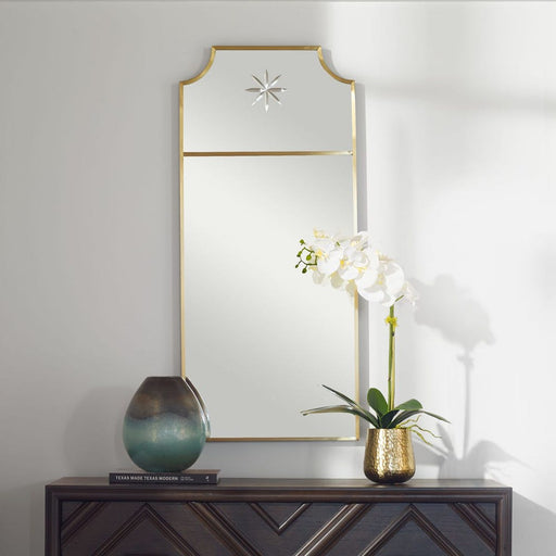UttermostInspired by trumeau styling, this updated traditional mirror displays a petite stainless steel frame finished in satin brushed brass, displaying an...