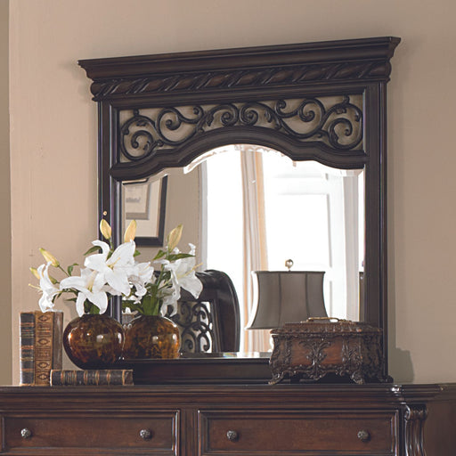 Liberty Furniture IndustriesAdd a statement to your room with the Arbor Place landscape mirror. This piece features gorgeous burnished brass scrolled metal inserts, unique rop...