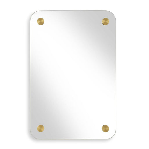 UttermostThe Hamrick Mirror showcases a frameless, polished edged, rectangular mirror with softly rounded corners, adorned with four decorative brass plated...