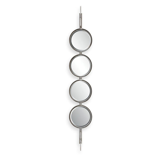 UttermostContemporary in style, this mirror features a sleek iron base with linear metal accents. The piece is finished in silver leaf with four round bevel...