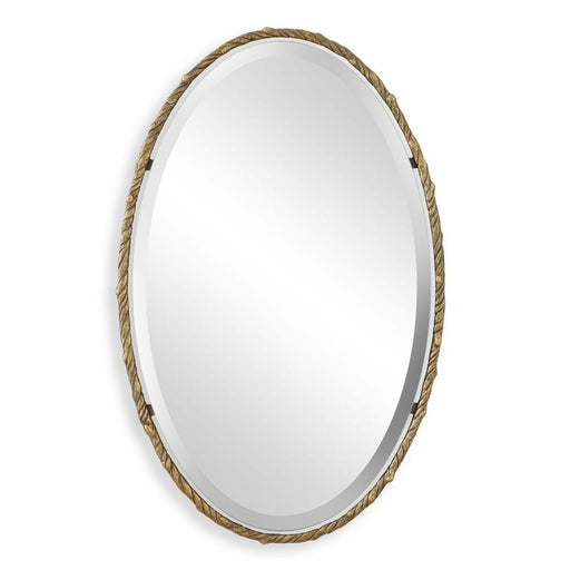 UttermostThe Ellipse Mirror features a petite iron frame surrounding a floating polished edged mirror with a deep edge that shows off the antiqued golden br...